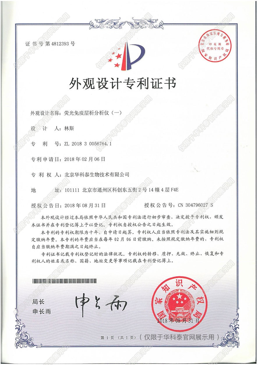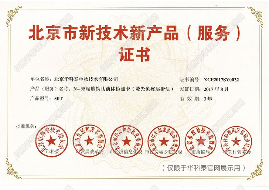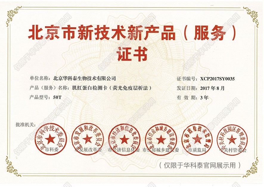 实用新型专利证书- 诊断早期急性心肌梗塞 标志物的联合检测卡